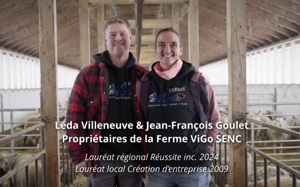 Issus du milieu agricole, les deux entrepreneurs ont fondé la Ferme ViGo en 2008 avec une production d’agneaux. L’entreprise a diversifié ses activités en 2012 avec l’ajout de la production de sirop d’érable, puis a connu une importante expansion en 2021 grâce à l’implantation d’un poulailler de plus de 13 000 poules pondeuses, à la suite de l’obtention d’un prêt à vie d’un quota de 6 000 poules.