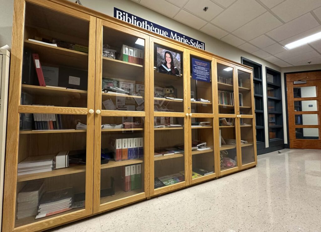La bibliothèque du Secteur éducation et kinésiologie de l’Université de Moncton, campus d’Edmundston, porte désormais le nom de Marie-Soleil, en hommage à Marie-Soleil Thériault, diplômée en éducation en mai 2025, décédée tragiquement en août de la même année.