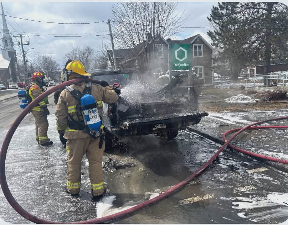 Les services d’urgence ont été appelés à intervenir vers 14 h 41, après qu’un appel au 911 ait signalé un feu de voiture au 415, avenue principale. À leur arrivée, les pompiers ont constaté que le véhicule était déjà largement embrasé.